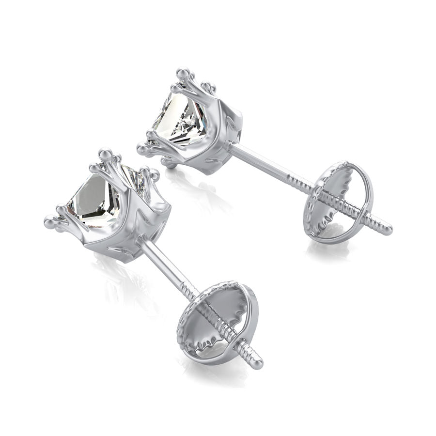 Princess Natural Diamond Crown Prong Stud Earrings